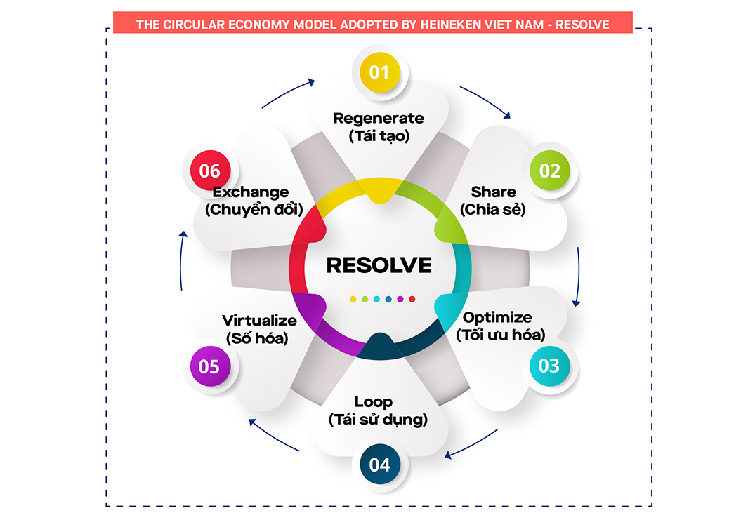 Green growth, sustainable development, before the recommendations of the World Bank to the Government of Vietnam, has been a strategy pursued by many businesses. As at HEINEKEN Vietnam, climate change is considered one of the serious threats to the livelihoods of many families and the Vietnamese economy, so efforts have been made by HEINEKEN to produce business in a sustainable manner through the maximum application of the circular economy model.