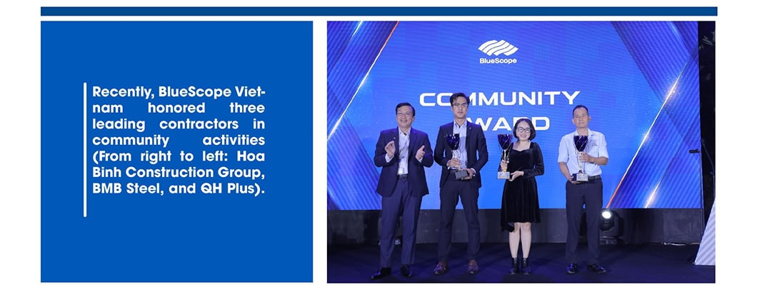 Social responsibility and sustainable developments are important parts of the development progress and business principles of NS BlueScope Vietnam. Therefore, at the event, BlueScope Vietnam honored partners who shared the same principles and contributed to the community through the “Award for the Community 2020-2021”. This award was given to Hoa Binh Construction Group, BMB Steel, and QH Plus – three big names in Vietnam’s construction industry that have taken part in many meaningful activities for the community over the past two years.
