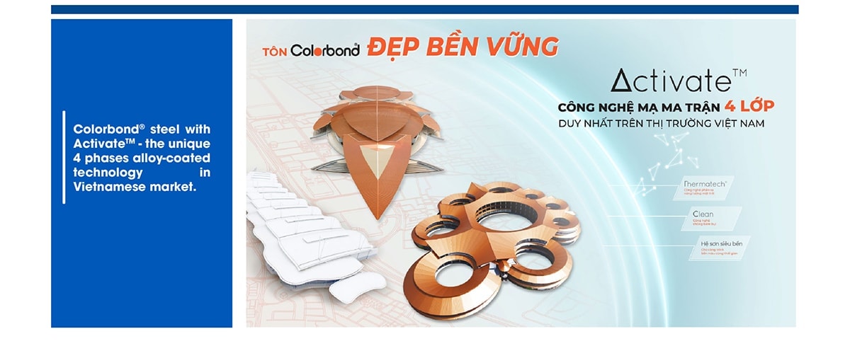 The challenges of the Covid-19 pandemic are expected to persist in 2022, as well as the price of raw materials continuing to increase. In this context, NS BlueScope Vietnam continues to accompany contractors on their journey by investing in R&D and market research to optimize current products and add new products to the portfolio according to market demand. Colorbond® steel with Activate™ – the unique 4 phases alloy-coated technology – has impressed contractors thanks to its outstanding corrosion resistance, ensuring the longevity of buildings, and keeping its aesthetics over time.