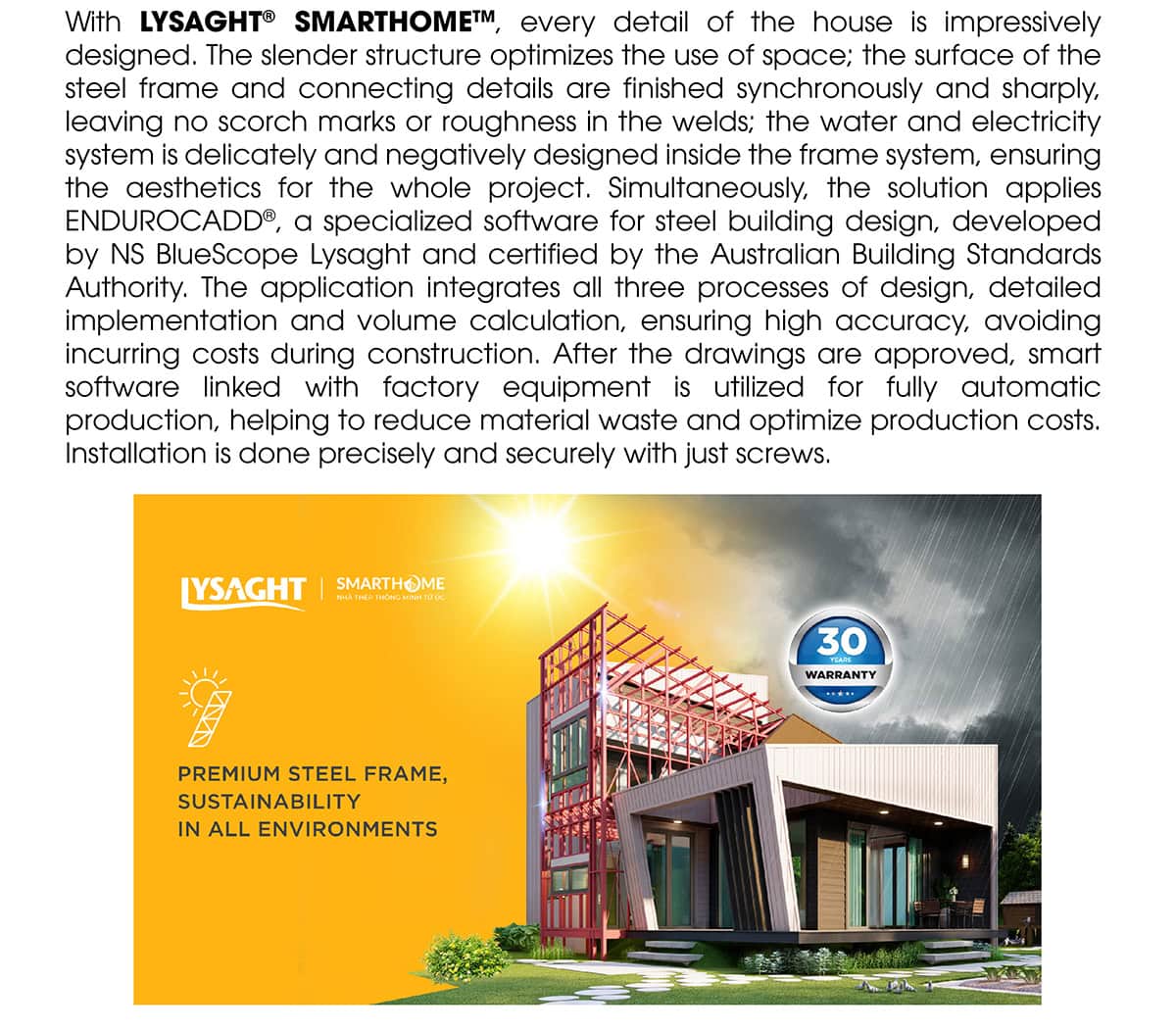 Homepageหน้าแรกTrang chủ / Vietnam / NS BLUESCOPE LYSAGHT EXPANDS DISTRIBUTION SYSTEM OF LYSAGHT® SMARTHOME™ – THE AUSTRALIAN STEEL SMARTHOME 4th October 2022 NS BLUESCOPE LYSAGHT EXPANDS DISTRIBUTION SYSTEM OF LYSAGHT® SMARTHOME™ – THE AUSTRALIAN STEEL SMARTHOME Back to News & Media