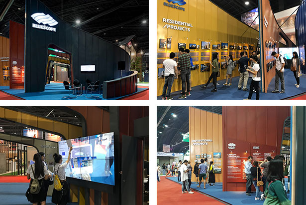 Winning project from BlueScope Design Award 2017 were displayed by using multi media to draw attention booth visitors. The booth was well-attended by a large crowd of architects, engineers, contractors and other people.