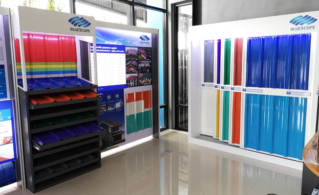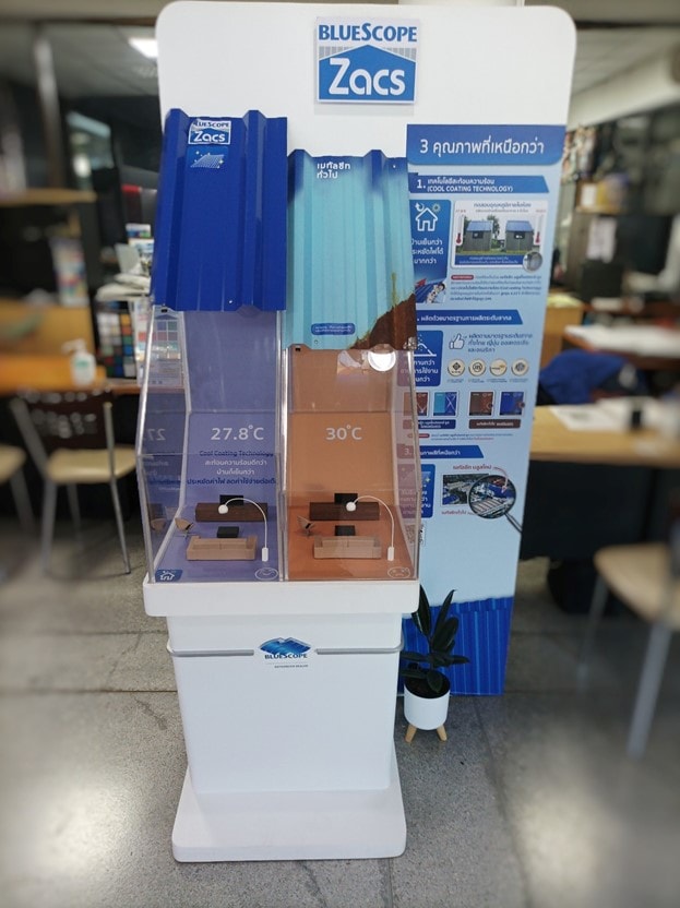 โซน 8 ตู้แสดงคุณสมบัติของ บลูสโคป แซคส์ คูล ที่เหนือกว่าสินค้าทั่วไป