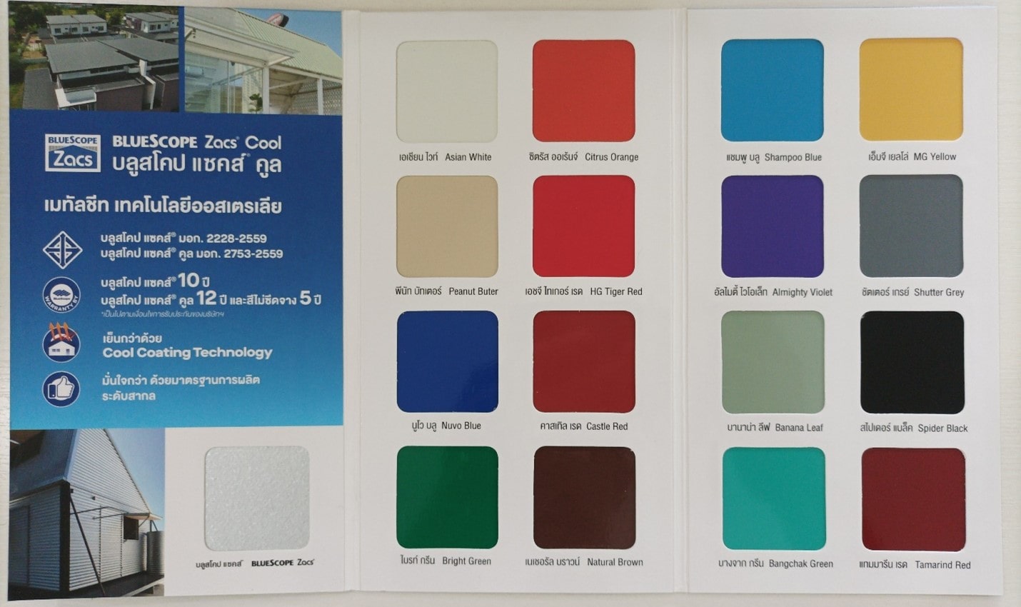 สำหรับท่านที่ต้องการเมทัลชีทแบบเคลือบสี ก็มีสีให้เลือกมากกว่า 16 เฉดสี และความหนาที่เหมาะกับการใช้งานประเภทต่างๆ ทั้งหลังคาบ้าน หลังคาและผนังโรงงาน รั้ว งานต่อเติมโรงจอดรถ หรือรั่วงานชั่วคราว