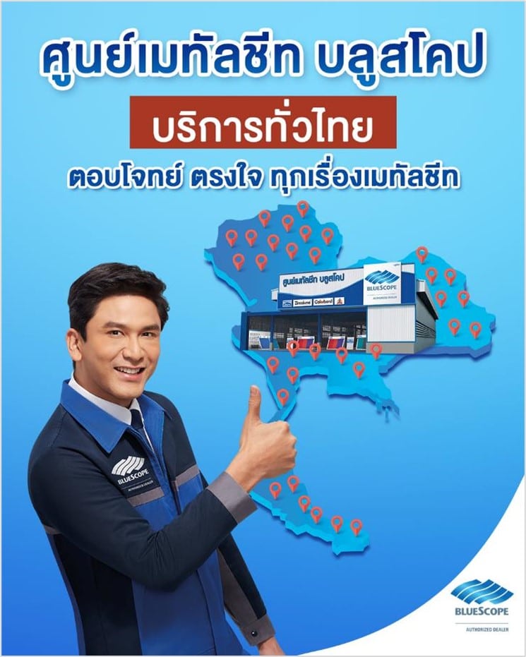 ศูนย์เมทัลชีท บลูสโคป มีให้บริการมากกว่า 70 สาขาทั่วประเทศ เป็นโรงรีดที่ตั้งอยู่ในพื้นที่ใกล้บ้านหรือโครงการของคุณ สามารถเดินทางไปขอคำแนะนำ เลือกดูสินค้า และซื้อสินค้าที่โรงรีดได้อย่างสะดวกสบาย
