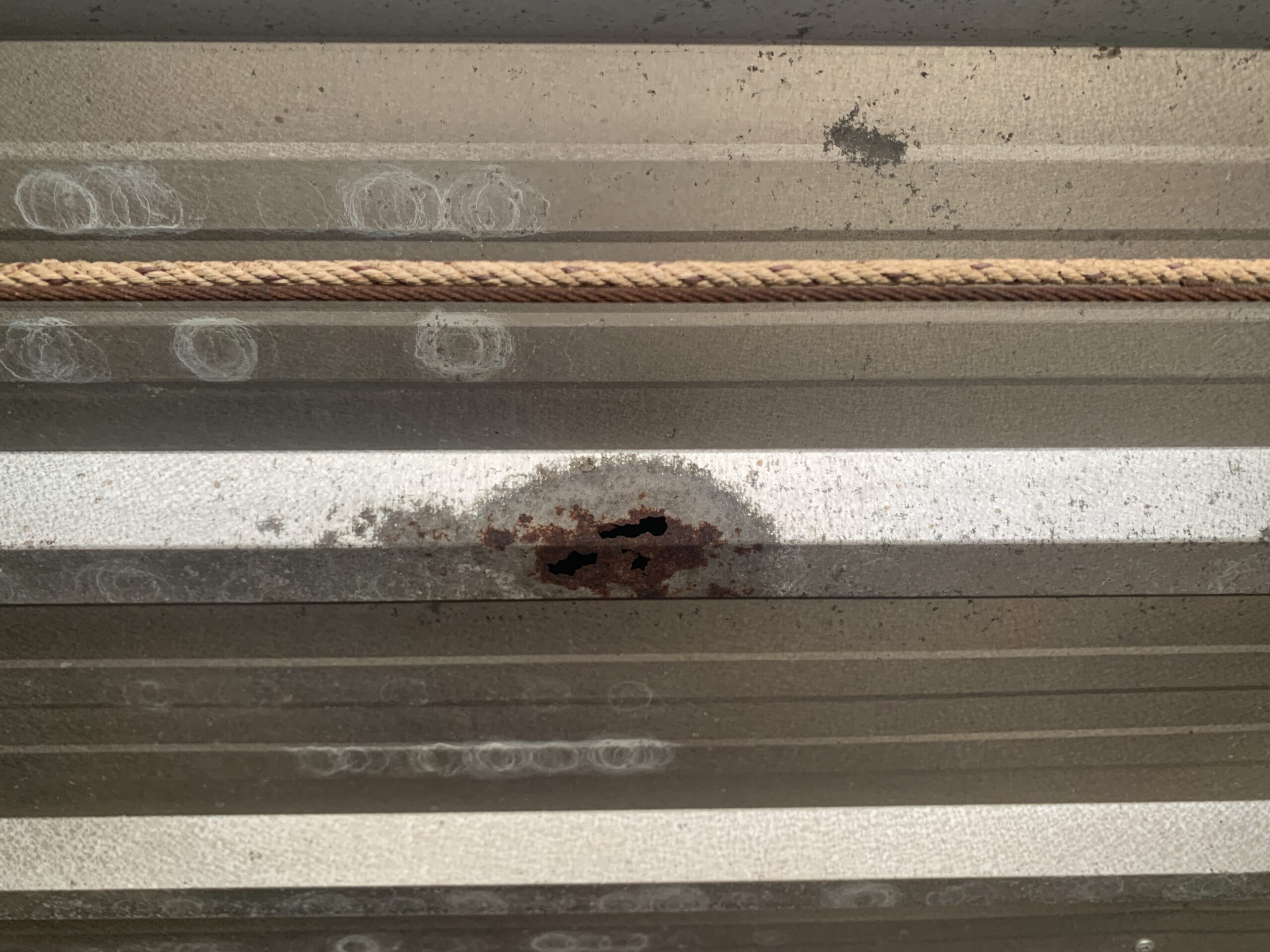 หากปล่อยไว้จนสนิมกัดกร่อนจนหลังคาเมทัลชีททะลุ อาจส่งผลกระทบต่อความเป็นอยู่ของไก่ และเป็นที่อยู่ของสัตว์ต่างๆ ที่อาจนำเชื้อโรค มาสู่ไก่ที่เลี้ยงไว้ได้ เช่นนก หนู แมลงวัน รวมถึงเมื่อฝนตก น้ำฝนจะไหลลงไปที่ฝ้าทำให้เกิดสนิมที่ฝ้าได้อีกด้วย