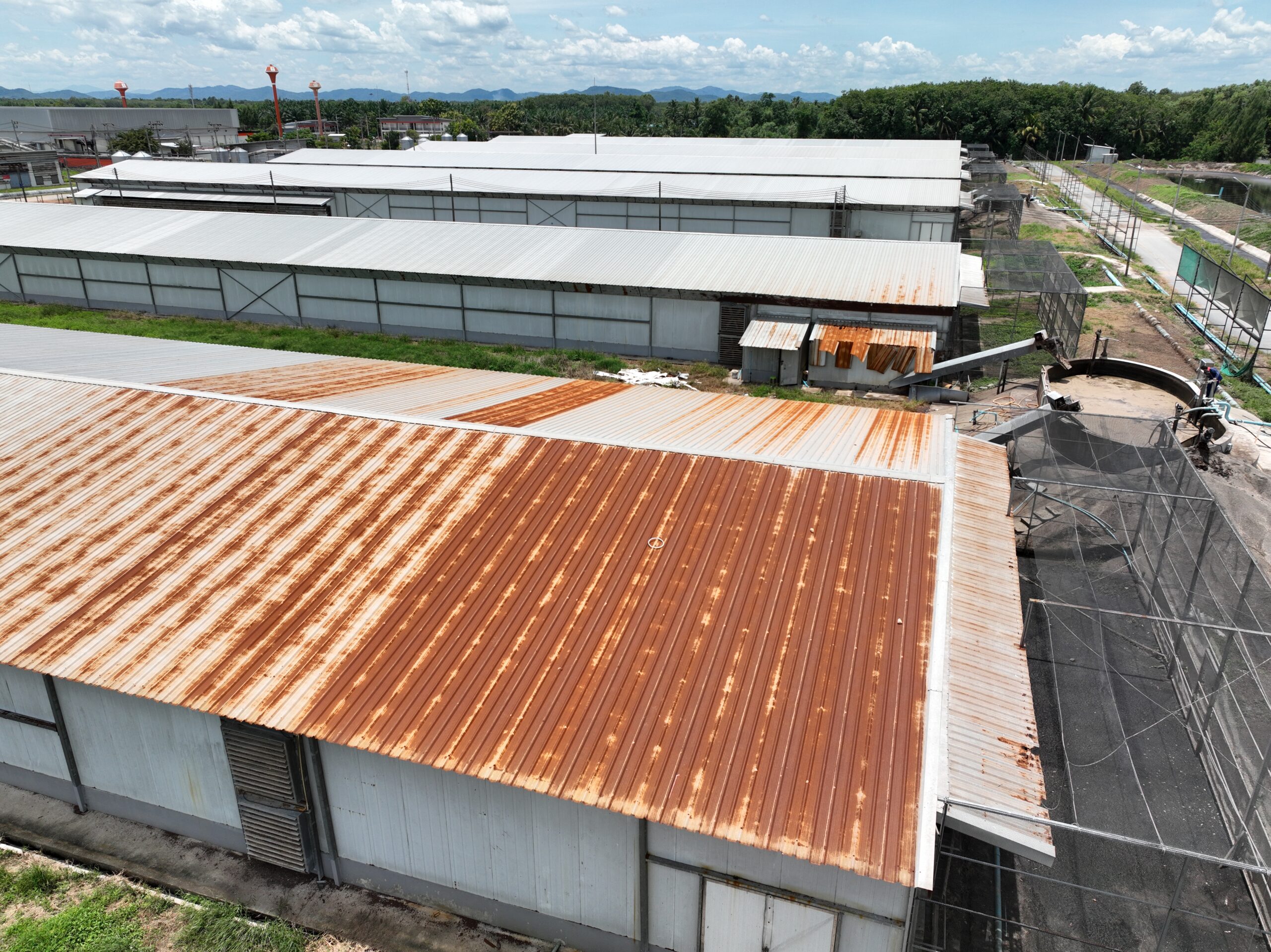 - ฝ้าเมทัลชีท เป็นส่วนสำคัญเช่นกันเพราะเป็นส่วนที่ช่วยลดความร้อนจากหลังคา และป้องกันไม่ให้ลมเย็นไหลออกไปภายนอกอีกด้วย หากเกิดสนิมและเกิดรูรั่วขึ้นมา อาจส่งผลกระทบต่อการควบคุมอุณหภูมิ ความชื้นในโรงเรือน รวมทั้งอาจจะเป็นที่อยู่ของแมลง ฝุ่น สิ่งสกปรก