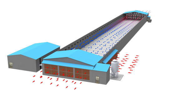 - ป้องกันความเย็น หรือลมเย็นไหลออกก่อนจะไปถึงท้ายโรงเรือน อากาศเย็นก็จะไปไม่ถึงด้านท้ายของโรงเรือน ก็อาจจะทำให้ไก่ที่อยู่ท้ายโรงเรือนให้ผลผลิตต่ำกว่าที่ต้องการ