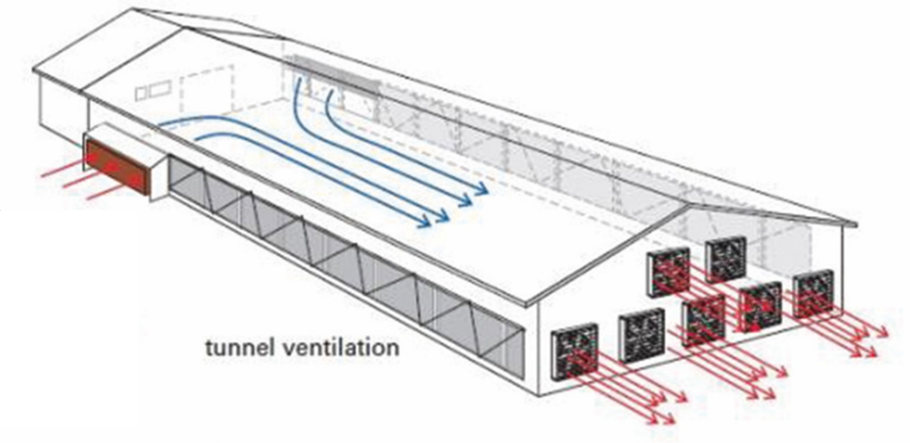 - การหมุนเวียนอากาศภายในโรงเรือนสม่ำเสมอมาก มีการระบายเอาอากาศเสียออกไปภายนอกโรงเรือนโดยพัดลม เป็นการลดปัญหาระดับแอมโมเนียในโรงเรือนได้ไม่ให้สะสมจนเป็นสาเหตุให้ไก่ตายได้