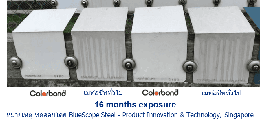 รูปผลการทดลองเปรียบเทียบเมทัลชีท Colorbond® Steel กับเมทัลชีททั่วไป