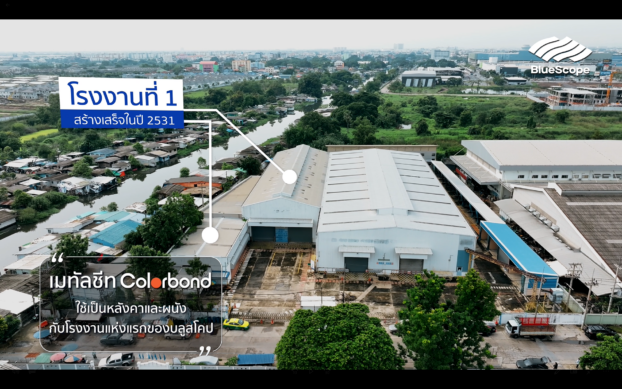 โรงงาน บริษัท เอ็นเอส บลูสโคป ไลสาจท์ (ประเทศไทย) จำกัด ที่รังสิต จังหวัดปทุมธานี ใช้เมทัลชีท Colorbond® Steel อายุ 35 ปี ยังไม่เกิดสนิม