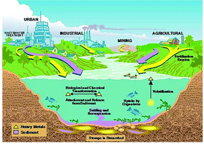 ภาพประกอบ : การปนเปื้อนโลหะหนักในธรรมชาติจากกิจกรรมของมนุษย์ (ที่มา: Garbarino et al., 1995)