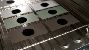 ขั้นตอนที่ 3  : นำแผ่นตัวอย่าง เข้าตู้อบ และตั้งค่าอุณหภูมิที่ 70 องศาเซลเซียส เป็นเวลา 24 ชั่วโมง เพื่อจำลองสภาวะฝุ่นที่มีความชื้นและถูกแสงแดดช่วงเวลากลางวัน ความร้อนจะไล่ความชื้นให้ระเหยออกไป ทิ้งไว้แต่คราบฝุ่น