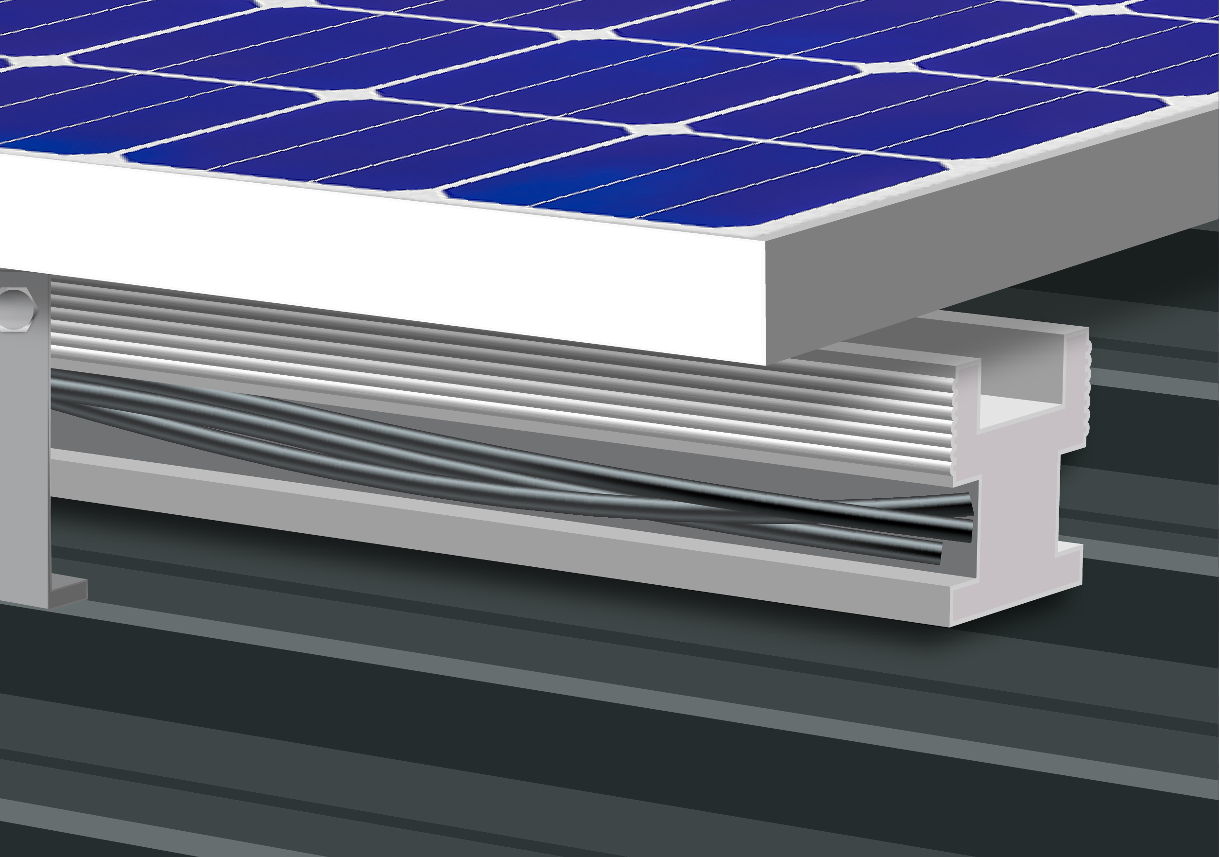 จัดเก็บสายไฟอยู่ในรางอุปกรณ์ที่ยึดติดกับโครงสร้างแผงโซล่าเซลล์