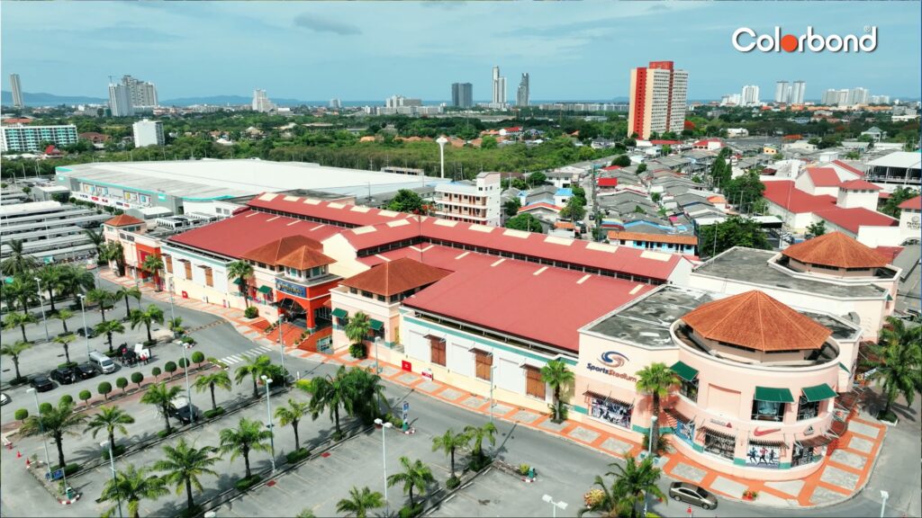 โรงงาน บริษัท เอ็นเอส บลูสโคป (ประเทศไทย) จำกัด ที่นิคมอุตสาหกรรม ห่างจากทะเล 1.8 กิโลเมตร ใช้เมทัลชีท COLORBOND® steel สี off white มา 30 ปี ยังไม่เกิดสนิม