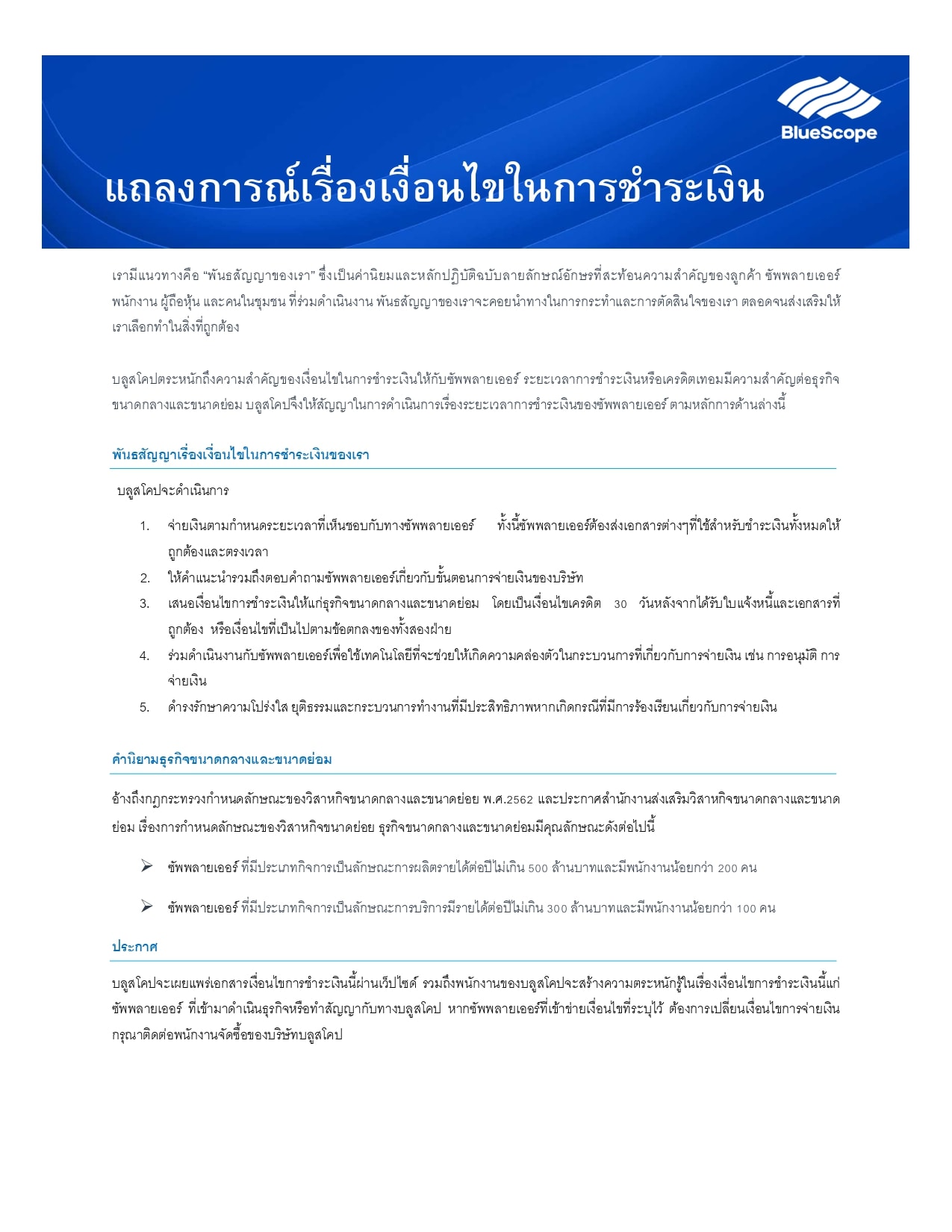 แถลงการณ์เรื่องเงื่อนไขในการชำระเงิน กด คลิก เพื่อดูรายละเอียด
