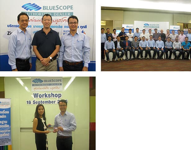บริษัท เอ็นเอส บลูสโคป (ประเทศไทย) จำกัด จัดงานสัมมนาให้กลุ่มลูกค้า ตัวแทนจำหน่าย BlueScope Authorized Dealer นำโดยคุณสมเกียรติปินตาธรรม ประธานและทีมผู้บริหาร เรียนเชิญลูกค้าที่เข้าร่วมเป็น “BlueScope Authorized Dealer”ทั้งหมด 22 สาขา ทั่วประเทศ เข้าร่วมรับฟังและหารือถึงแนวทางการให้บริการ การสนับสนุน และพัฒนาศักยภาพของ BlueScope Authorized Dealer ศูนย์เมทัลชีท บลูสโคป เพื่อให้สามารถตอบสนองความต้องการของลูกค้าในพื้นที่ของแต่ละสาขาได้ โดยมีเป้าหมายให้ BlueScope Authorized Dealerเป็นผู้เชี่ยวชาญด้านหลังคาเหล็กที่คุณวางใจโดยได้รับความร่วมมือจากตัวแทนจำหน่ายเข้าร่วมงาน และร่วมงานเลี้ยงในช่วงเย็น ซึ่งบรรยากาศเป็นไปอย่างสนุกสนานและเป็นกันเอง