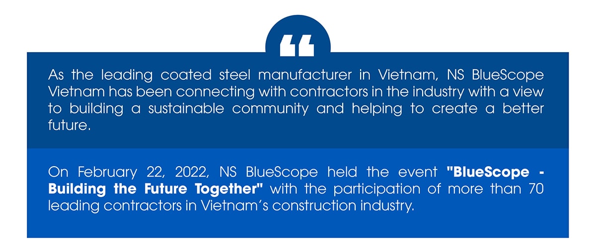 NS BlueScope Vietnam expects to continue building a nationwide network of prestigious contractors under the common goal of shaping a sustainable future for the construction industry.