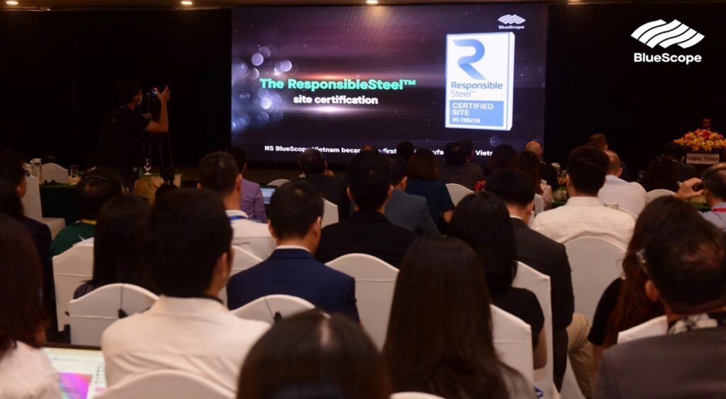 Đồng hành cùng sự kiện, NS BlueScope Việt Nam cũng chia sẻ về chiến lược thực hành ESG dành cho ngành thép cũng như hành trình đạt chứng nhận ResponsibleSteel™. Thông qua kinh nghiệm triển khai thành công của mình, NS BlueScope Việt Nam chia sẻ mong muốn truyền cảm hứng cho các doanh nghiệp Việt Nam nói chung và doanh nghiệp ngành thép nói riêng sẽ cùng nhau hành động và tiếp bước trên con đường tiến tới phát triển bền vững.