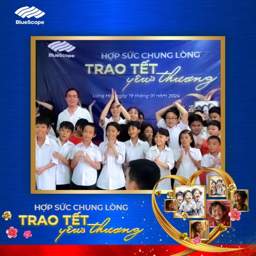 Ngày 19/01/2024 vừa qua, NS BlueScope Việt Nam đã có mặt tại Nhà Xã Hội Long Hải, Bà Rịa – Vũng Tàu hợp sức chung lòng để trao Tết Yêu Thương cho hơn 100 em nhỏ có hoàn cảnh khó khăn và khuyết tật tại đây thông qua: