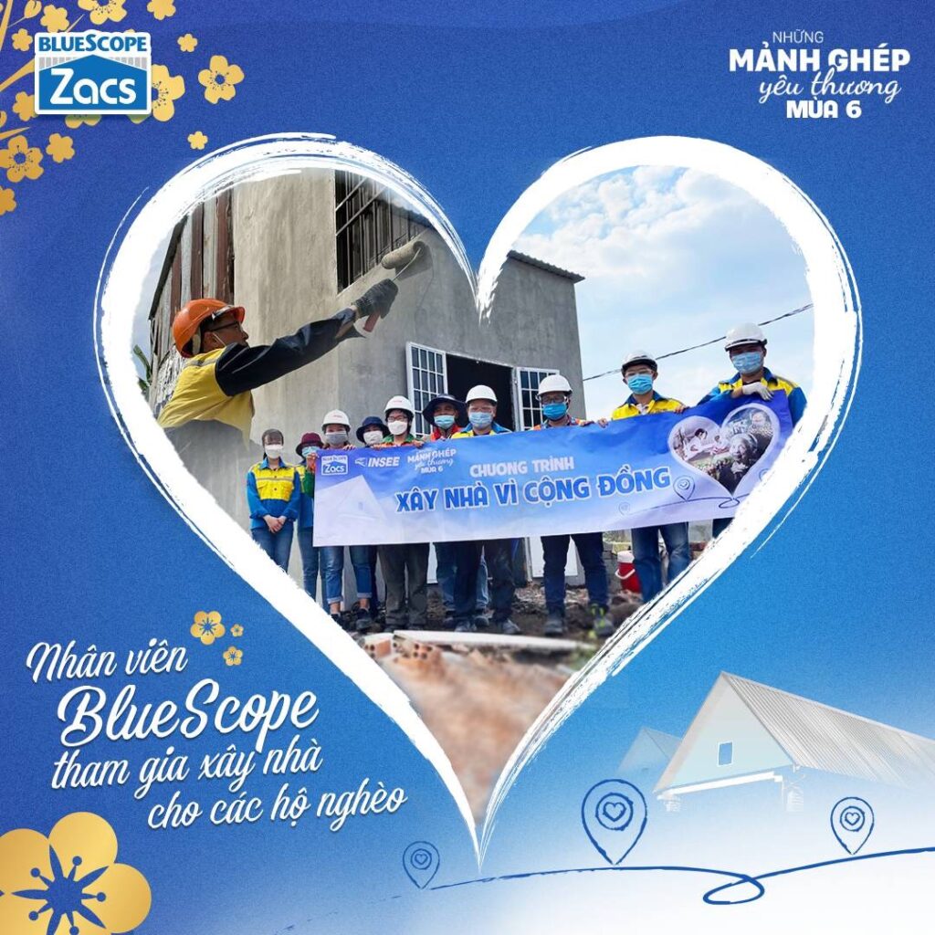 Hoạt động này nằm trong khuôn khổ chương trình Mảnh Ghép Yêu Thương, trao tặng 50 mái nhà và 5 căn nhà dành cho những hộ gia đình có hoàn cảnh khó khăn với sự chung tay của NS BlueScope VN, Đại lý uỷ quyền Tôn Zacs, thợ thầu và đối tác INSEE.