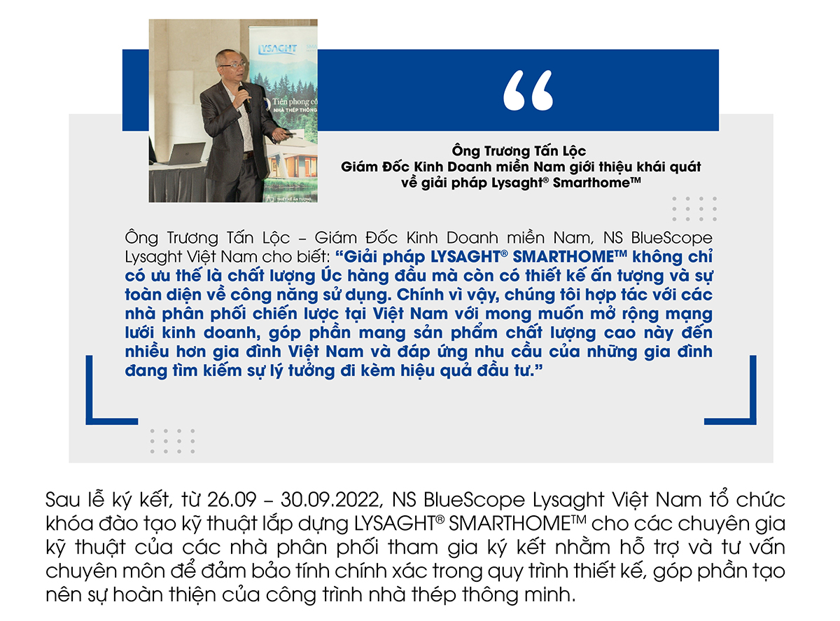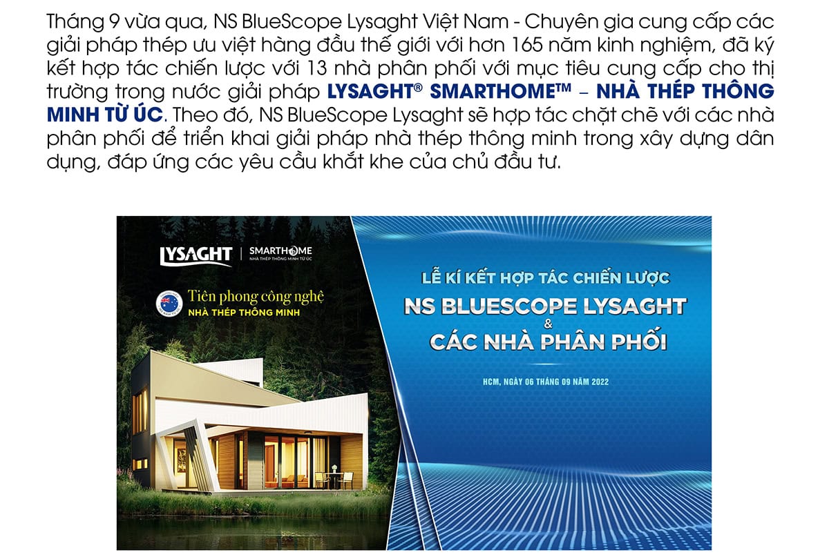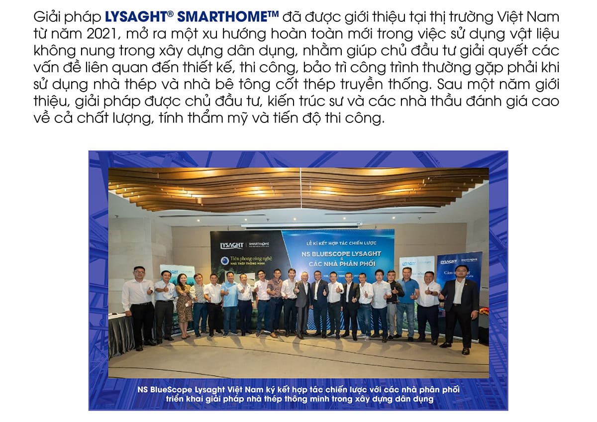 Homepageหน้าแรกTrang chủ / Vietnam / NS BLUESCOPE LYSAGHT MỞ RỘNG HỆ THỐNG PHÂN PHỐI NHÀ THÉP THÔNG MINH TỪ ÚC – LYSAGHT® SMARTHOME™ 4th October 2022 NS BLUESCOPE LYSAGHT MỞ RỘNG HỆ THỐNG PHÂN PHỐI NHÀ THÉP THÔNG MINH TỪ ÚC – LYSAGHT® SMARTHOME™ Quay lại tin tức và phương tiện truyền thông