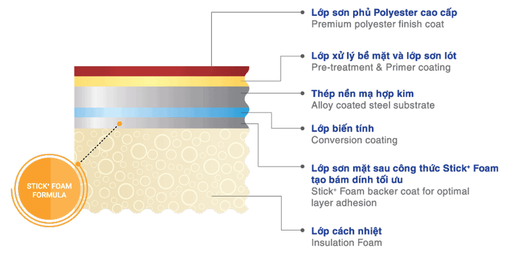 Lần đầu tiên, NS BlueScope Việt Nam phát triển dòng thép mạ màu dành riêng cho ứng dụng sandwich panel với những công nghệ ưu việt dựa trên sự am hiểu những yêu cầu của sản phẩm panel hoàn thiện như độ bền, tính thẩm mỹ, khả năng bám dính lớp cách nhiệt.